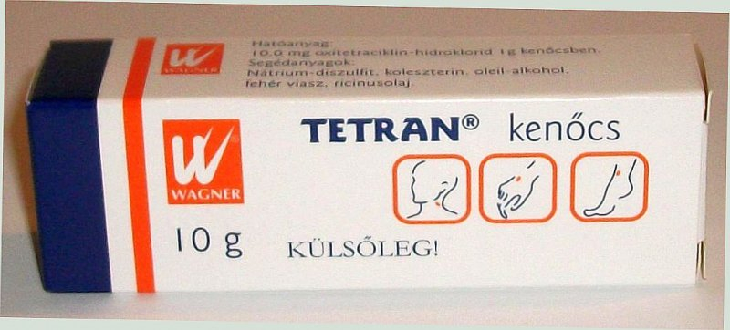A Tetran kenőcs hatóanyaga, az oxitetraciklin széles spektrumú antibakteriális szer, amely egyes baktériumok (mind Gram-pozitív, mind Gram‑negatív) ellen ható antibiotikum.