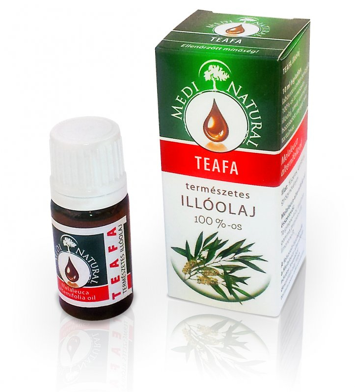 Az egyik legismertebb illóolaj, felhasználási lehetősége szinte végtelen. Bőrgomba elleni készítményekbe különösen előnyös alkalmazása. A MediNatural teafaolaj fertőtlenítő oldatok összetevőjeként szájpenészre, fogínygyulladásra, zsíros, túlterhelt, pattanásos arcbőrre, kézen és lábon előforduló körömgomba elleni krémekbe, korpás, problémás fejbőrre ajánljuk.